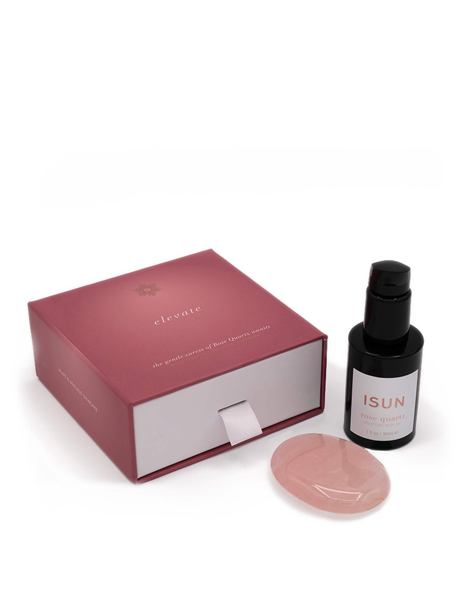 Invite love and compassion with the Elevate Gemstone Ceremony Box, a heart-opening ritual that uplifts your spirit. This lovingly curated set features a Rose Quartz-infused gemstone oil and a Rose Quartz massage stone celebrated for its gentle, loving energy.